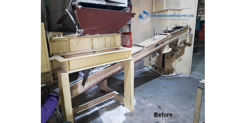 From the observations made during the site visit, it was clear that the existing screw conveyor was not built to handle the abrasive environment. The new EFM screw conveyor was designed to eliminate all the previous problems. The following improvements were incorporated in the new design: