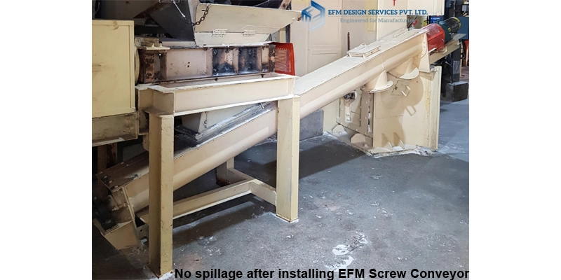 From the observations made during the site visit, it was clear that the existing screw conveyor was not built to handle the abrasive environment. The new EFM screw conveyor was designed to eliminate all the previous problems. The following improvements were incorporated in the new design: